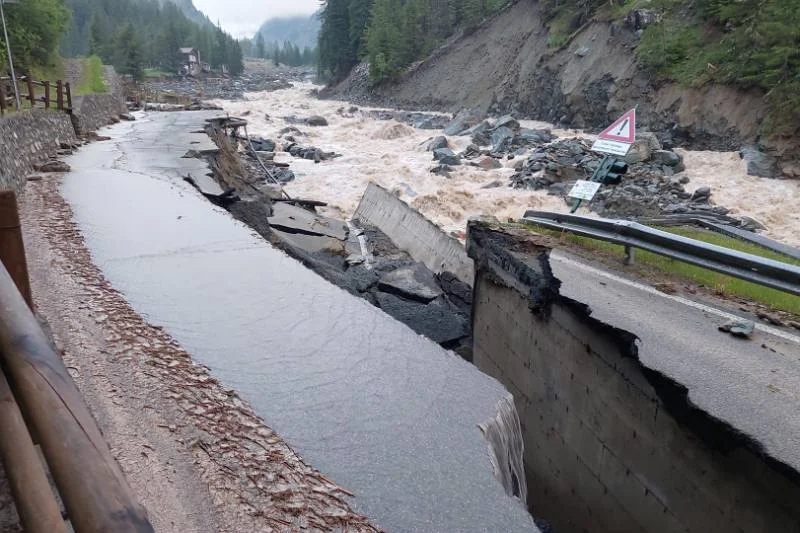 A Cogne è in corso l'evacuazione delle numerose persone rimaste bloccate nel paese a causa dei danni causati dall'ondata di maltempo. L'unica strada che collega la località al resto della Valle d'Aosta è chiusa, parzialmente crollata al km 9 a causa dell'ondata di piena del torrente Grand Eyvia.