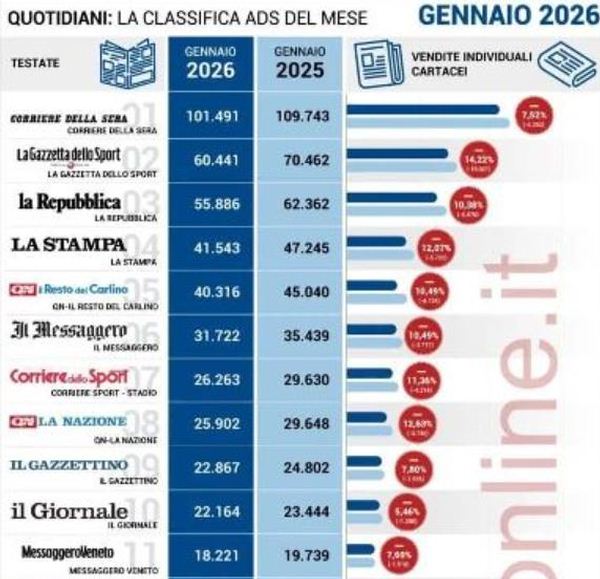 Personalmente continuo a leggere l'informazione anche sulla carta stampata. È un piacere particolare che mi stimola anche a cercare di rinnovare il rito di un caffè e una veloce lettura. Ma siamo nel 2026 e allora dobbiamo vivere nelle news online, tra il vero e le fake news.