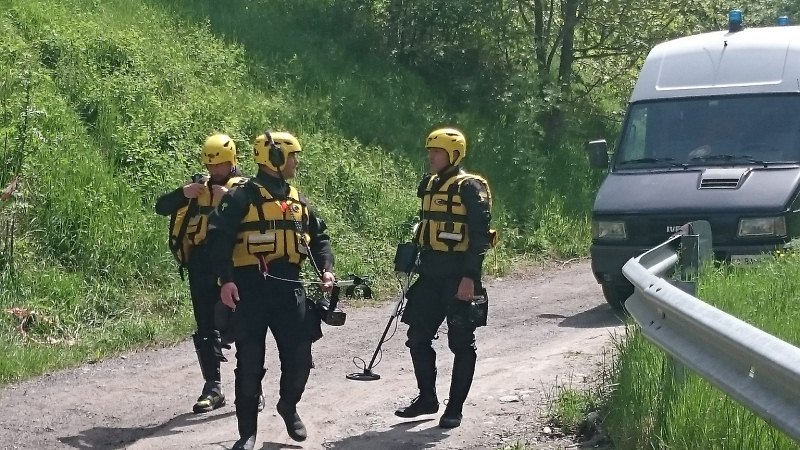 I carabinieri specialisti di Genova hanno sondato il fiume con un metal detector