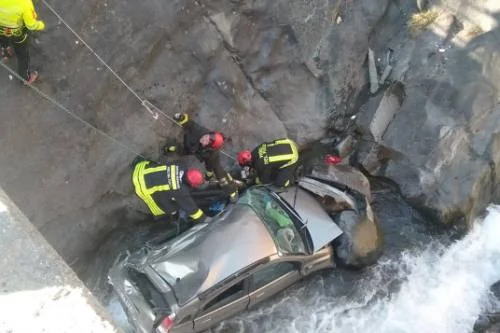 Soccorsi in azione nel tardo pomeriggio di oggi a Valtournenche per un'auto caduta nel torrente Barmasse.
