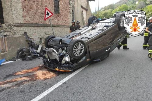 Sul posto il personale del 118 e i vigili del fuoco di Aosta con il gruppo taglio insieme ai volontari di Verrès - Champdepraz.