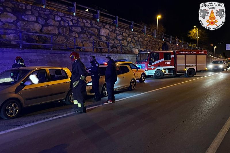 Traffico rallentato e code in via Roma, ad Aosta, per un incidente stradale avvenuto questa sera nei pressi della rotatoria per Porossan.