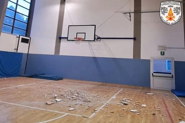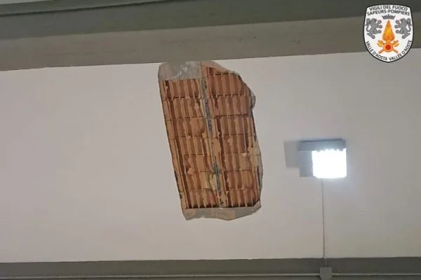 Intervento dei vigili del fuoco questa mattina nella scuola Saint-Roch di Aosta, in corso Ivrea, dopo che una porzione di soffitto di meno di 9 mq è crollata. Il distacco è avvenuto nella palestra dell'edificio scolastico.