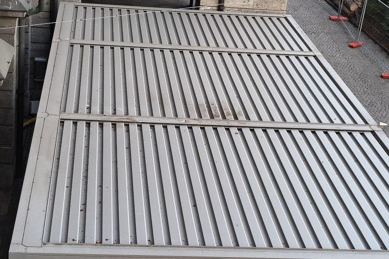Il distacco si è verificato dal balcone del Salone Ducale mentre la ditta incaricata di preparare le luminarie natalizie stava realizzando il "cielo stellato" del Marché Vert Noël. La colonnina a cui era stato agganciato un tirante è caduta sul dehor del locale di Paolo Griffa, al momento chiuso al pubblico, causando qualche ammaccatura e nessun grave danno. Nessuno inoltre è rimasto ferito.