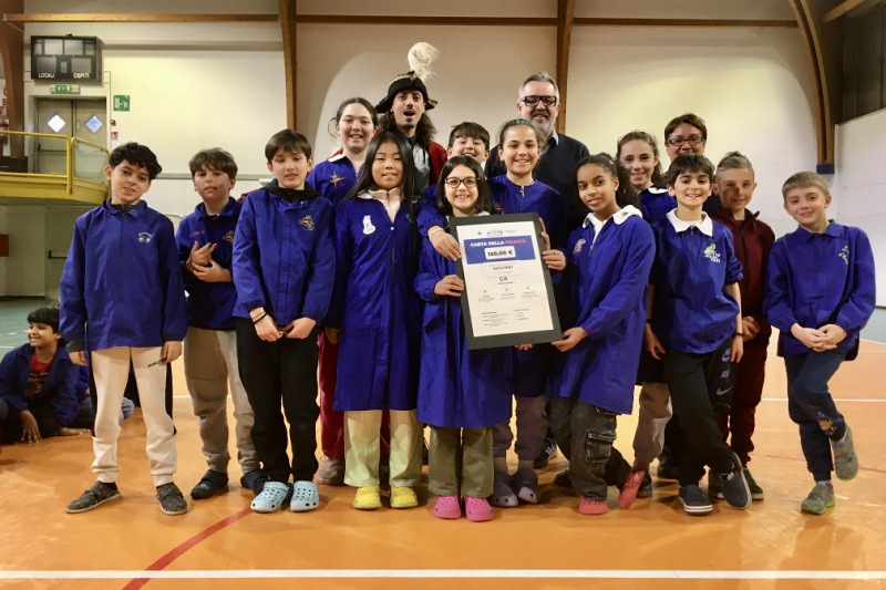 Per concludere il progetto è stata stilata la classifica delle classi che hanno raccolto il maggior numero di Ecopagelle in rapporto al numero di studenti. Le classi premiate sono la 4B, la 2B e la 5A della scuola primaria Ramires dell’Istituto Comprensivo E. Lexert. Alle classi vincitrici è stato assegnato un riconoscimento complessivo di 450 euro, suddiviso in tre buoni acquisto da 150 euro ciascuno per l’acquisto di materiale didattico. Inoltre, tutti gli studenti e le studentesse partecipanti hanno ricevuto in dono una borraccia metallica, pensata per ridurre il ricorso alle bottiglie in plastica.