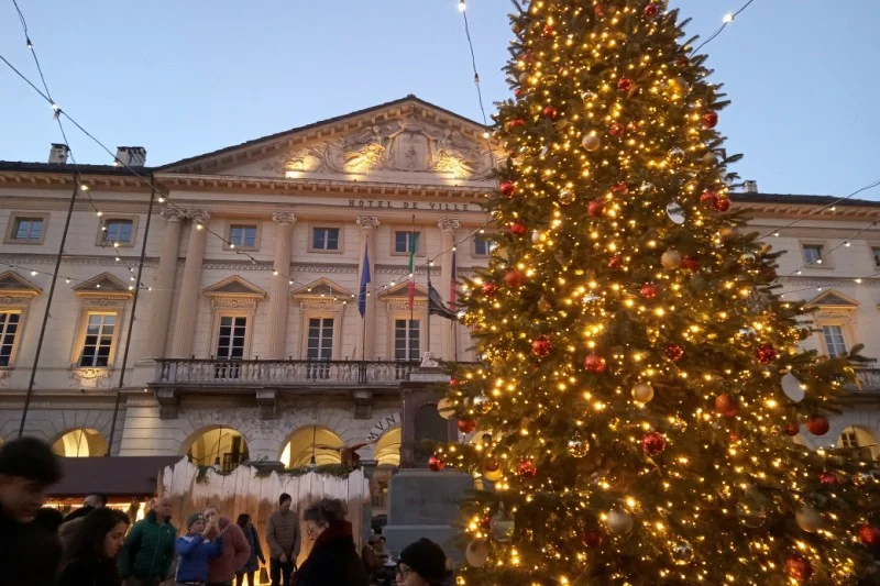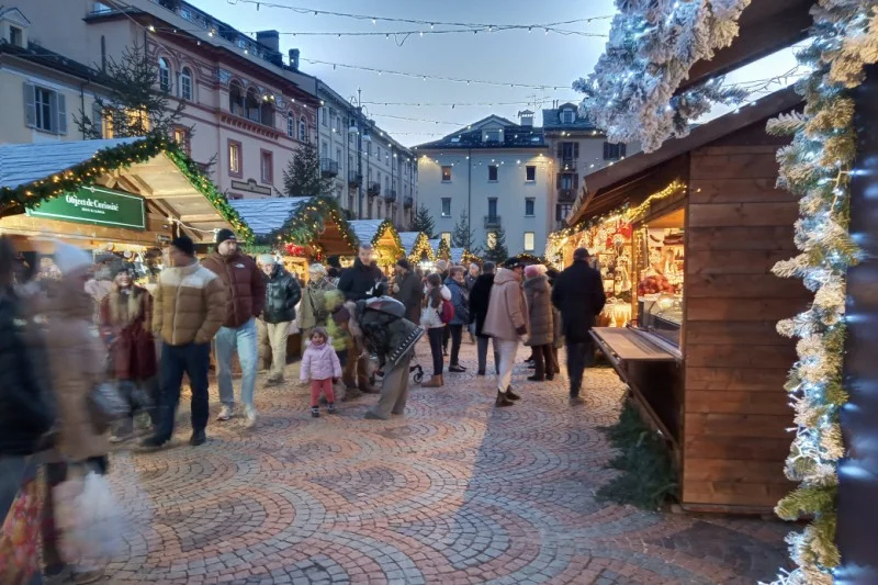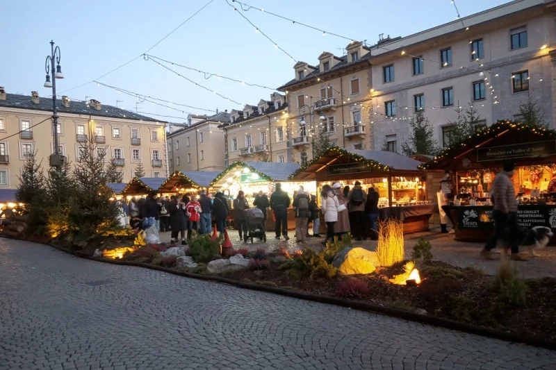 La diciassettesima edizione del mercatino di natale è visitabile in piazza Chanoux fino al 6 gennaio 2026