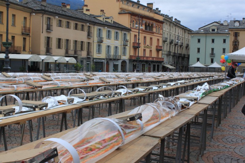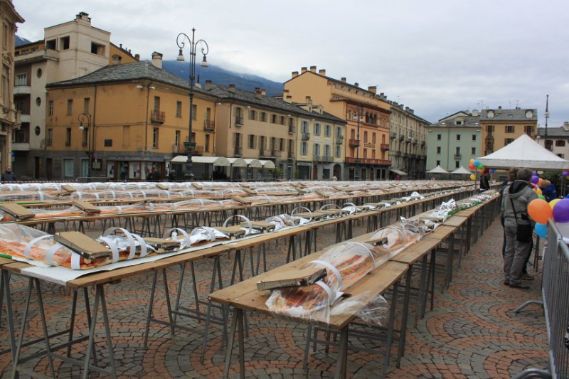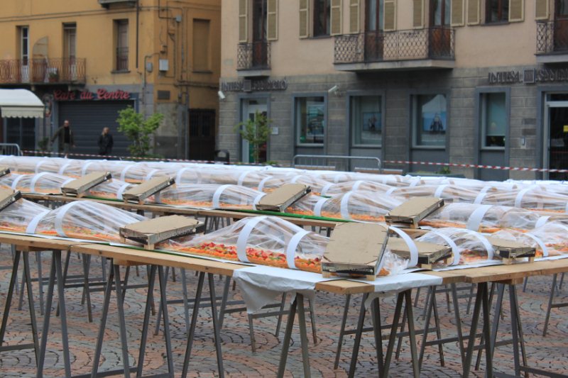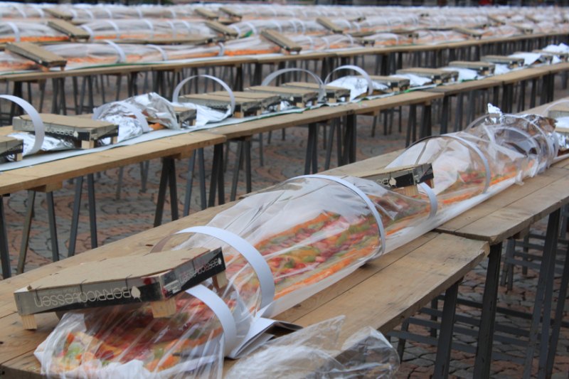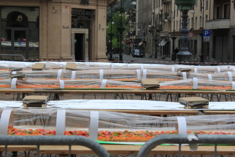 Purtroppo le condizioni meteo non hanno aiutato i pasticceri che hanno aderito a compiere l'impresa di realizzare un dolce lungo più di 1.150 metri.