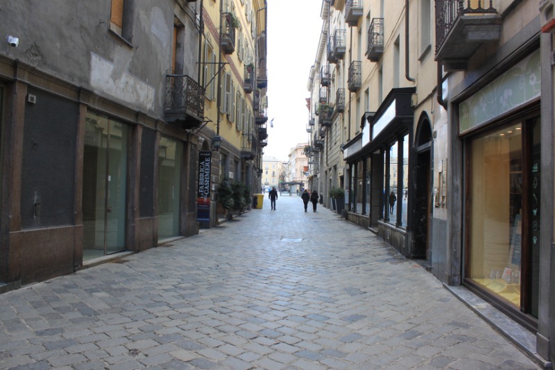 Scorci del centro di Aosta alle prese con l'emergenza sanitaria Coronavirus