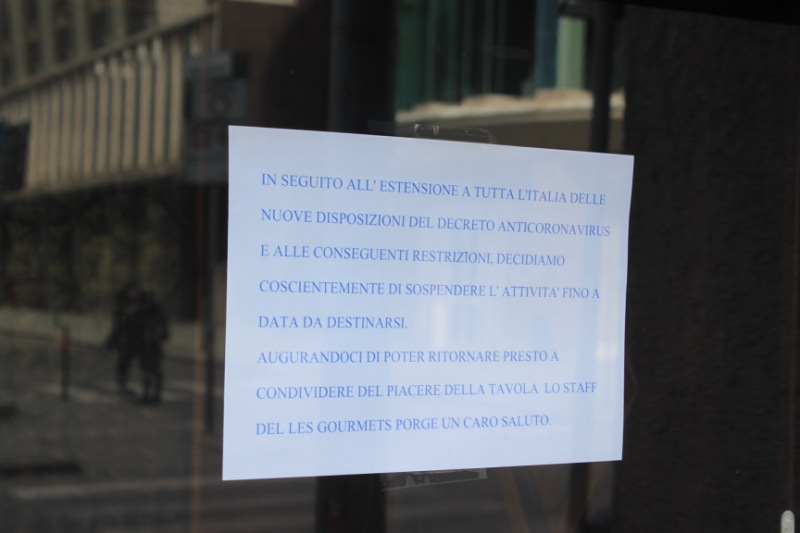 Parcheggi insolitamente vuoti, qualche persona che cammina nelle vie del centro, avvisi sulle vetrine dei negozi chiusi.