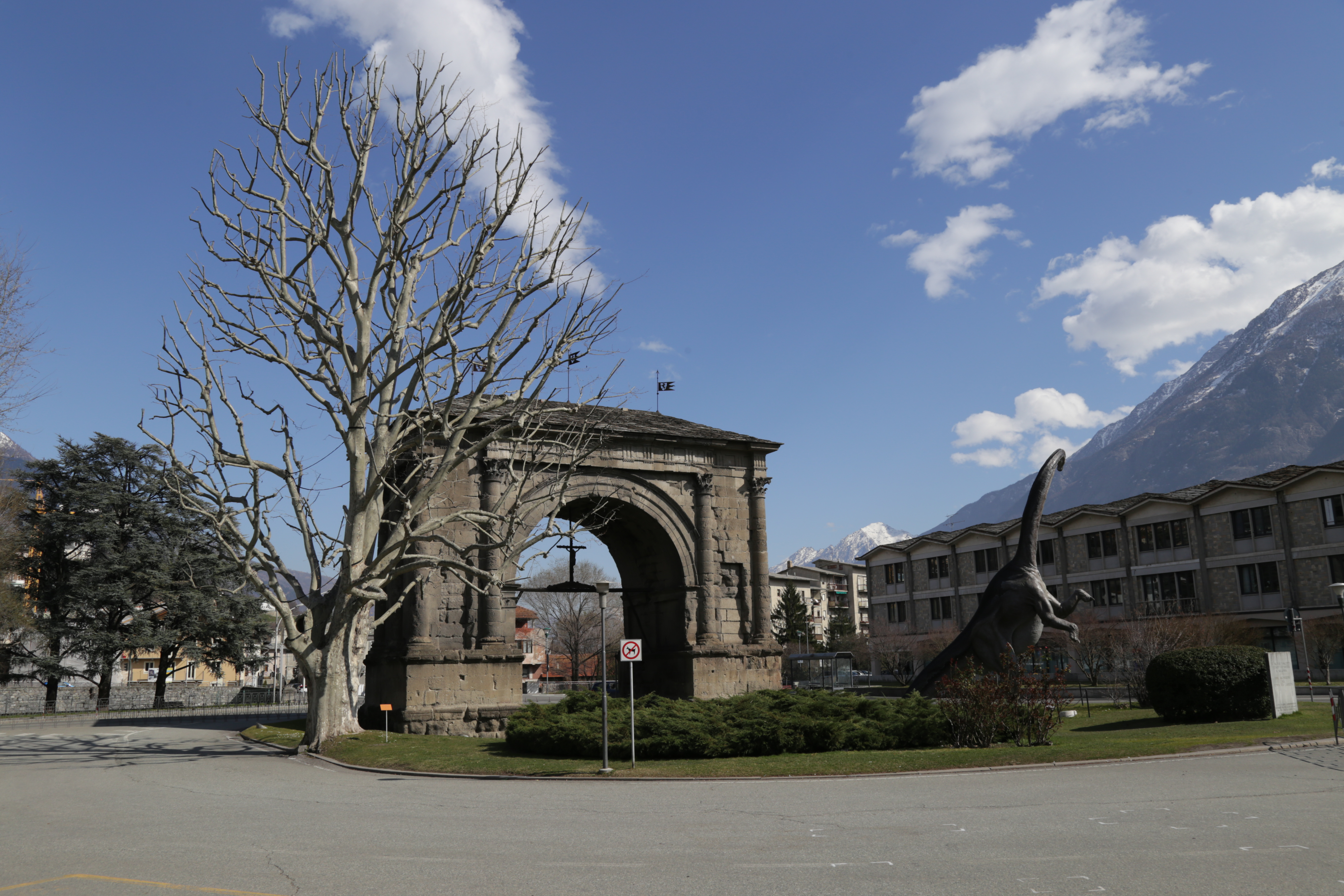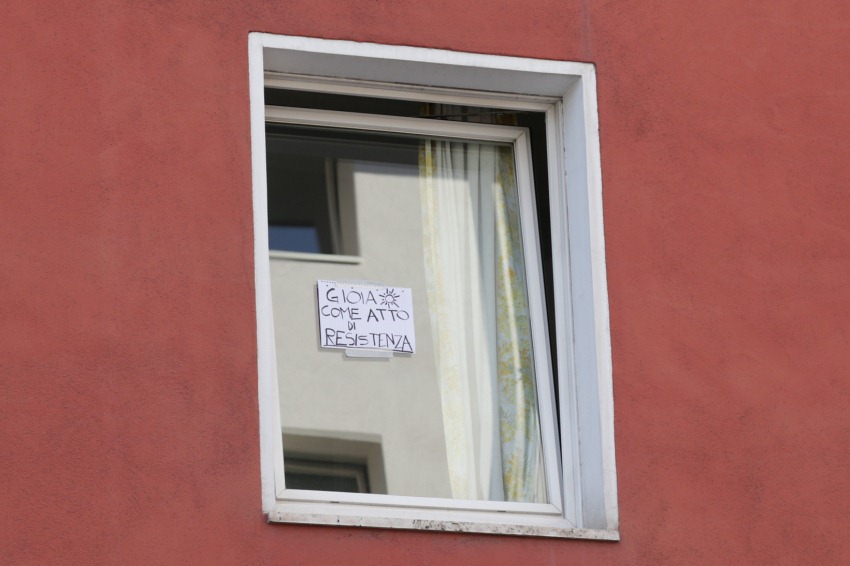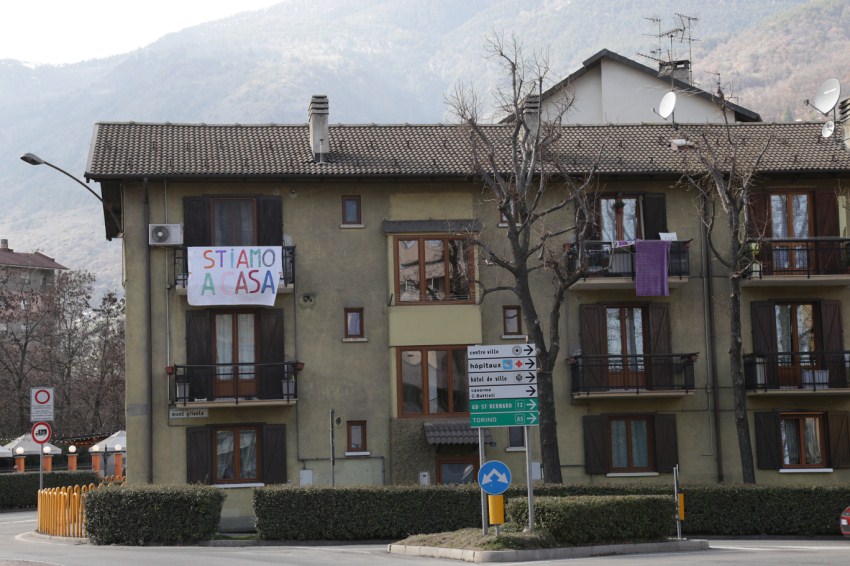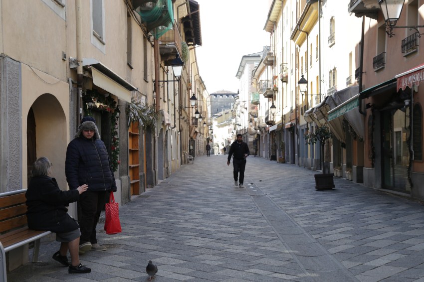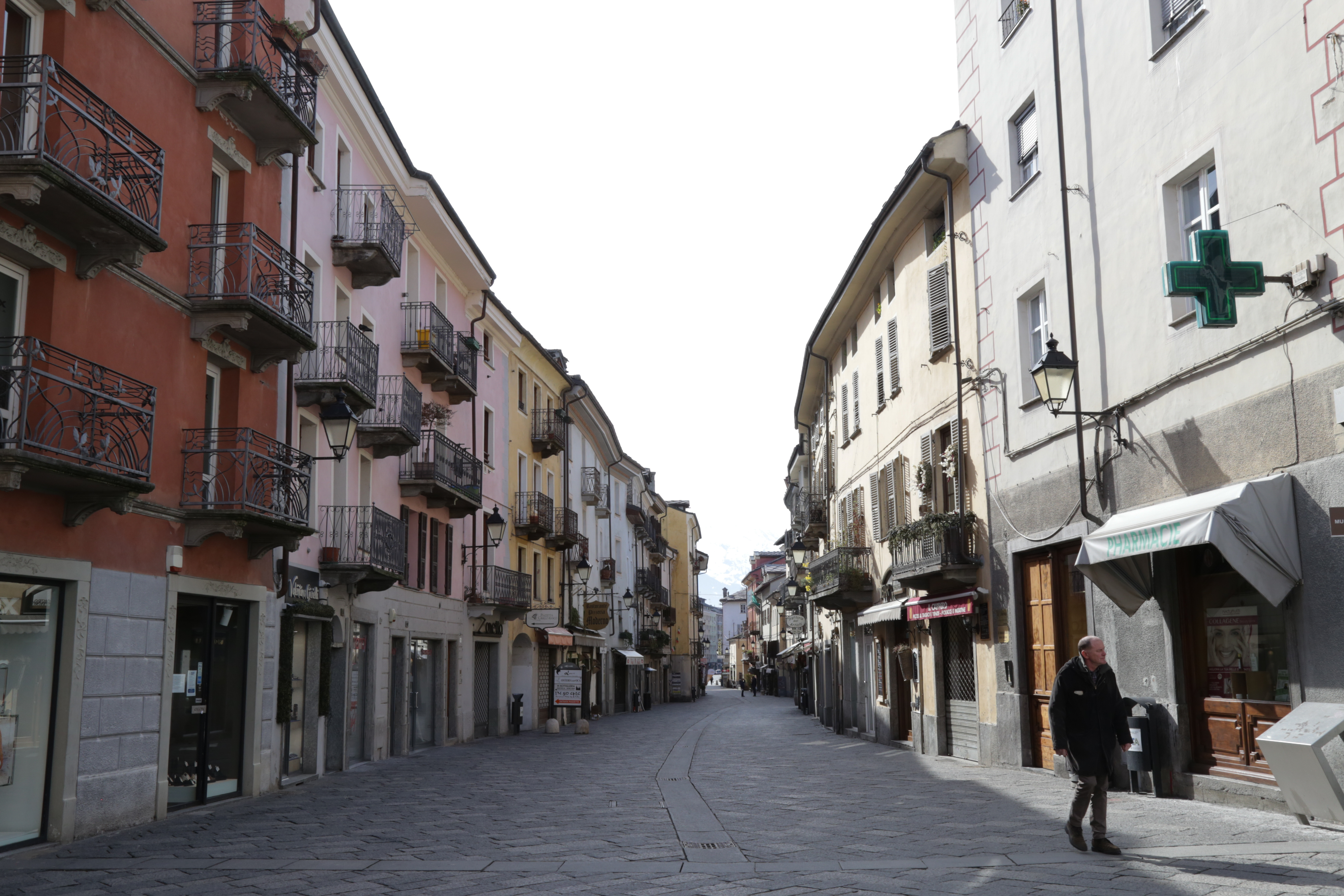 Da una parte avvisi di chiusura in rosso che campeggiano sulle vetrine di molti negozi di Aosta, dall'altra biglietti e frasi di incoraggiamento per superare l'emergenza Covid-19. In una città di Aosta quasi deserta, spuntano gli inviti a "non mollare".