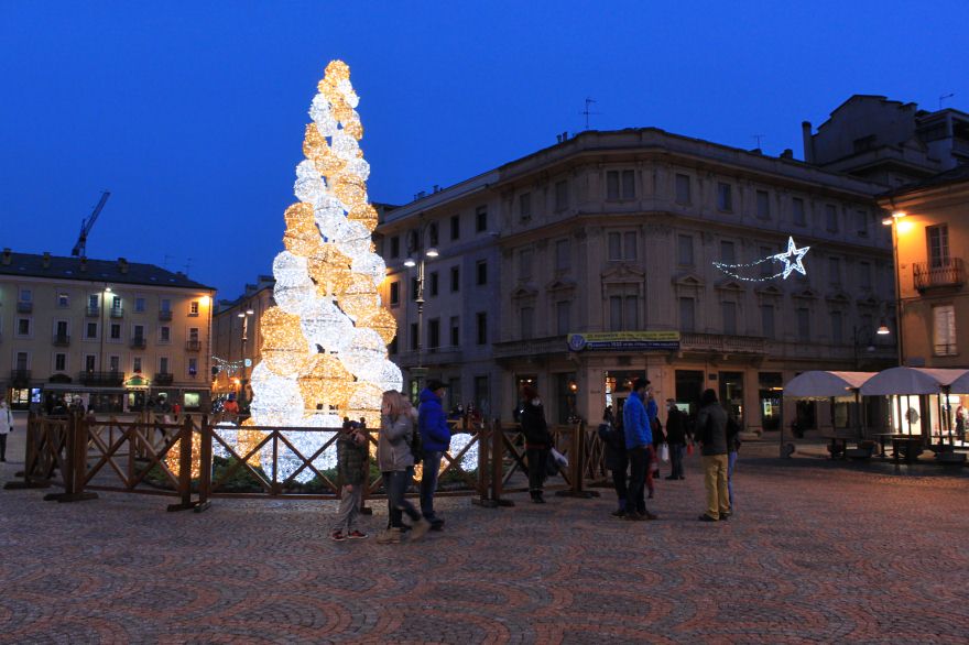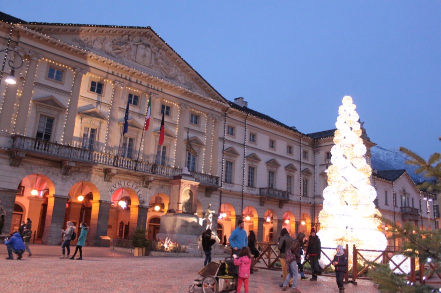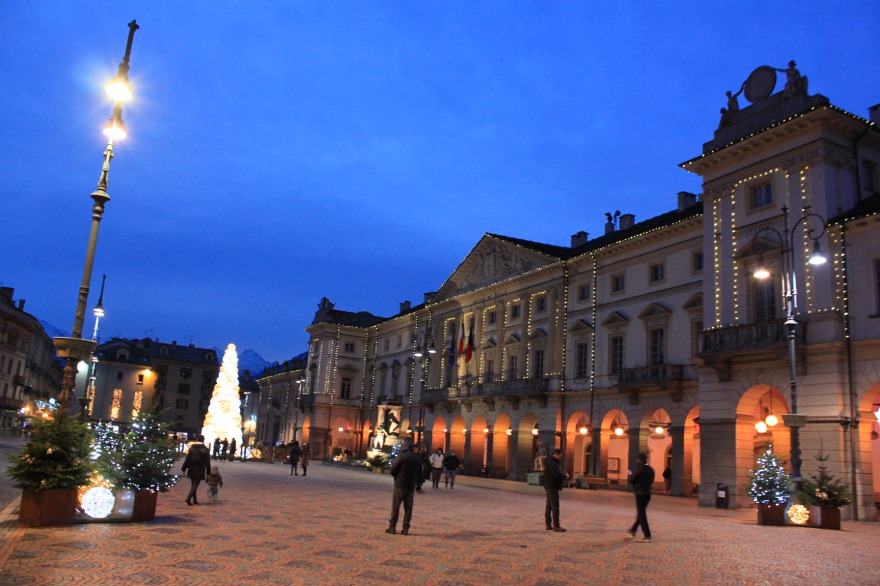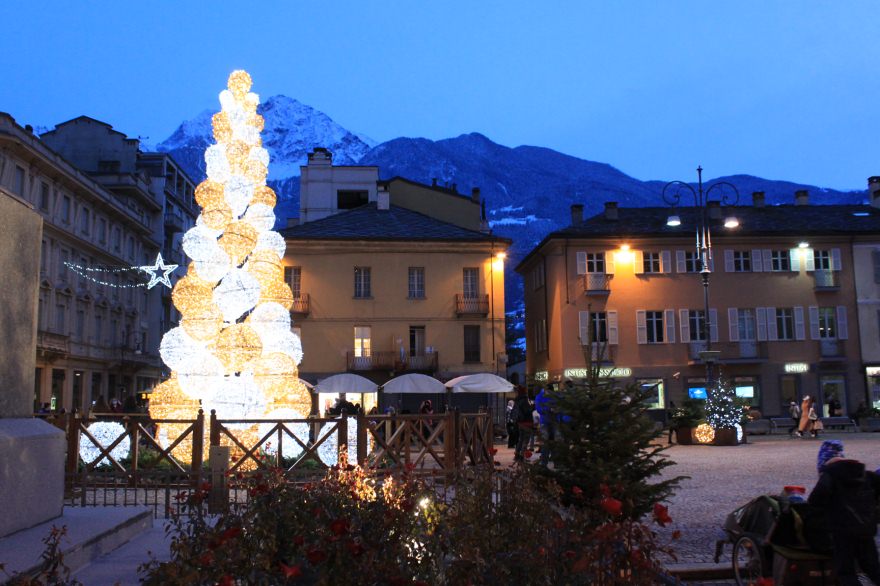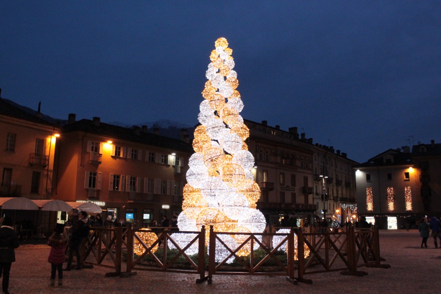 L'albero di Natale posizionato quest'anno in piazza Chanoux, nel salotto di Aosta, è stato acceso.