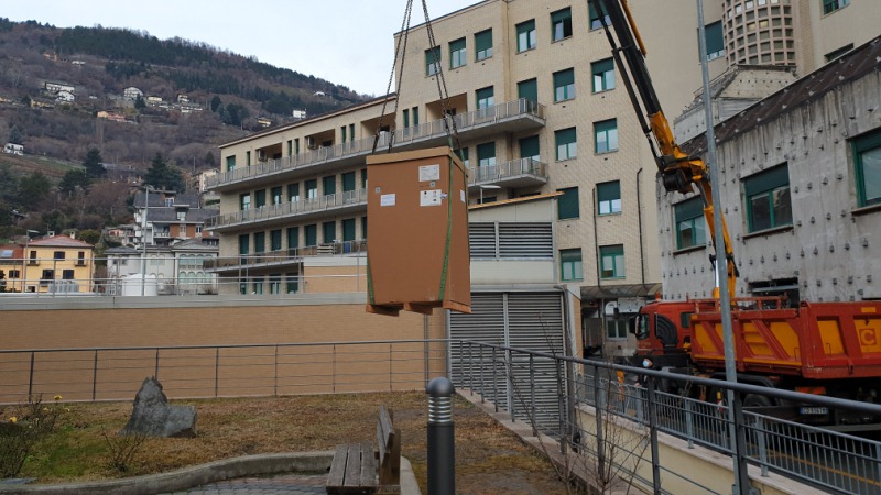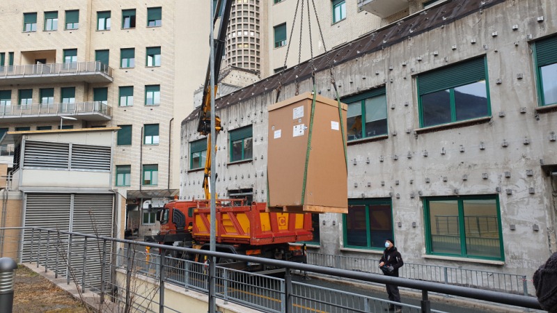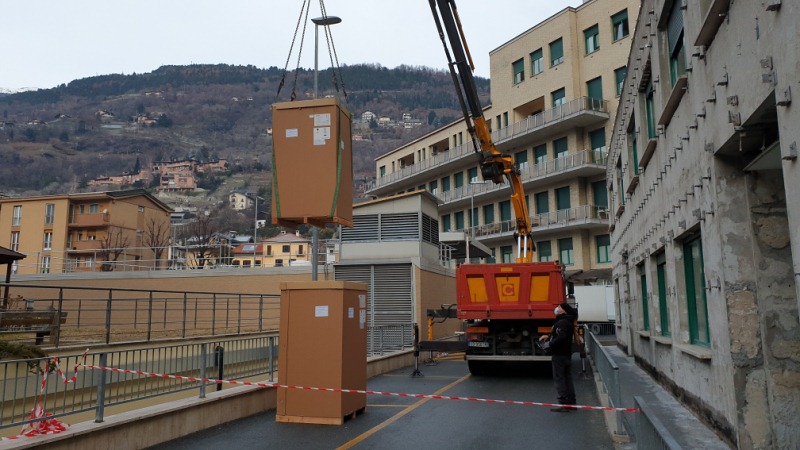 È iniziata questa mattina l'installazione all'ospedale regionale U. Parini dei frigoriferi per lo stoccaggio dei vaccini anti Covid-19 ad una temperatura di -80°C.