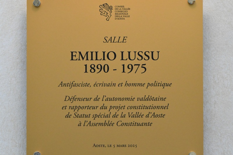Lussu, antifascista, esule politico e padre costituente, è stato relatore all'Assemblea Costituente del disegno di legge per lo Statuto speciale della Valle d'Aosta. «La passione e la tenacia con cui Emilio Lussu difese la causa valdostana riecheggiano ancora oggi negli articoli di cui si compone il nostro Statuto - afferma il presidente del Consiglio Valle, Alberto Bertin -. Egli non si risparmiò e anzi si adoperò affinché, nella nuova cornice costituzionale, alla Valle d'Aosta fosse assicurata la "possibilità di realizzare una sua vita moderna" e di "crearsi un ordinamento semplice e civile". Oggi, in questa data significativa, il Consiglio Valle intitola al suo ricordo un luogo non a caso: memori dell'intenso lavoro svolto da Lussu, in particolare, nei lavori preparatori che si svolsero nella Commissione dei 75, la scelta è stata quella di intitolare allo stesso la sala Commissioni del Consiglio. Non un luogo qualunque, ma la sede per eccellenza in cui avviene la discussione delle innovazioni legislative del Consiglio regionale. Il luogo dove la nostra autonomia vive ogni giorno».