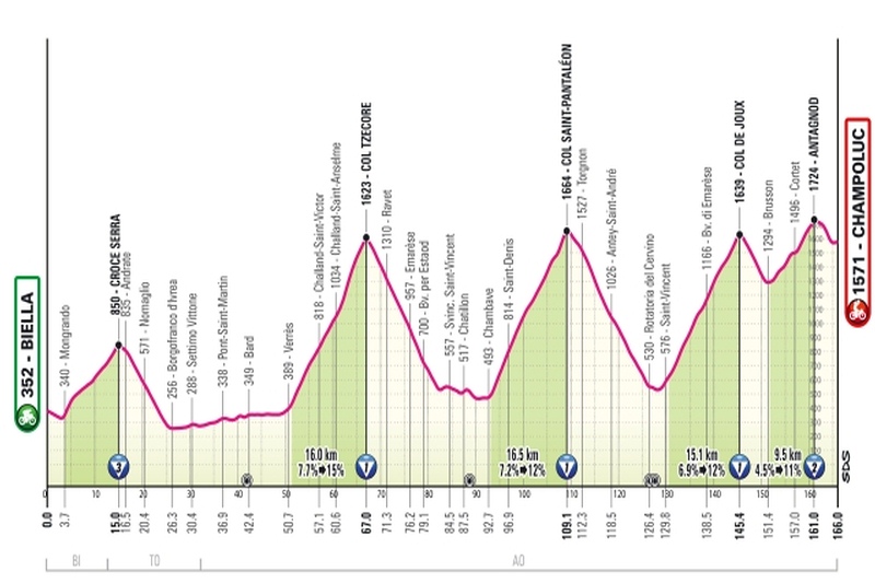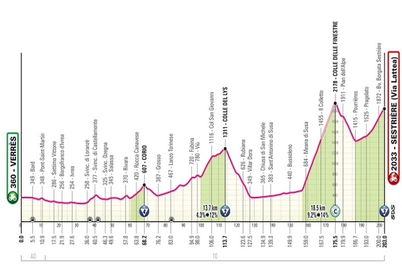 Al tappone alpine da Biella a Champoluc seguirà la frazione da Verrès a Sestriere, come tappe numero 19 e numero 20